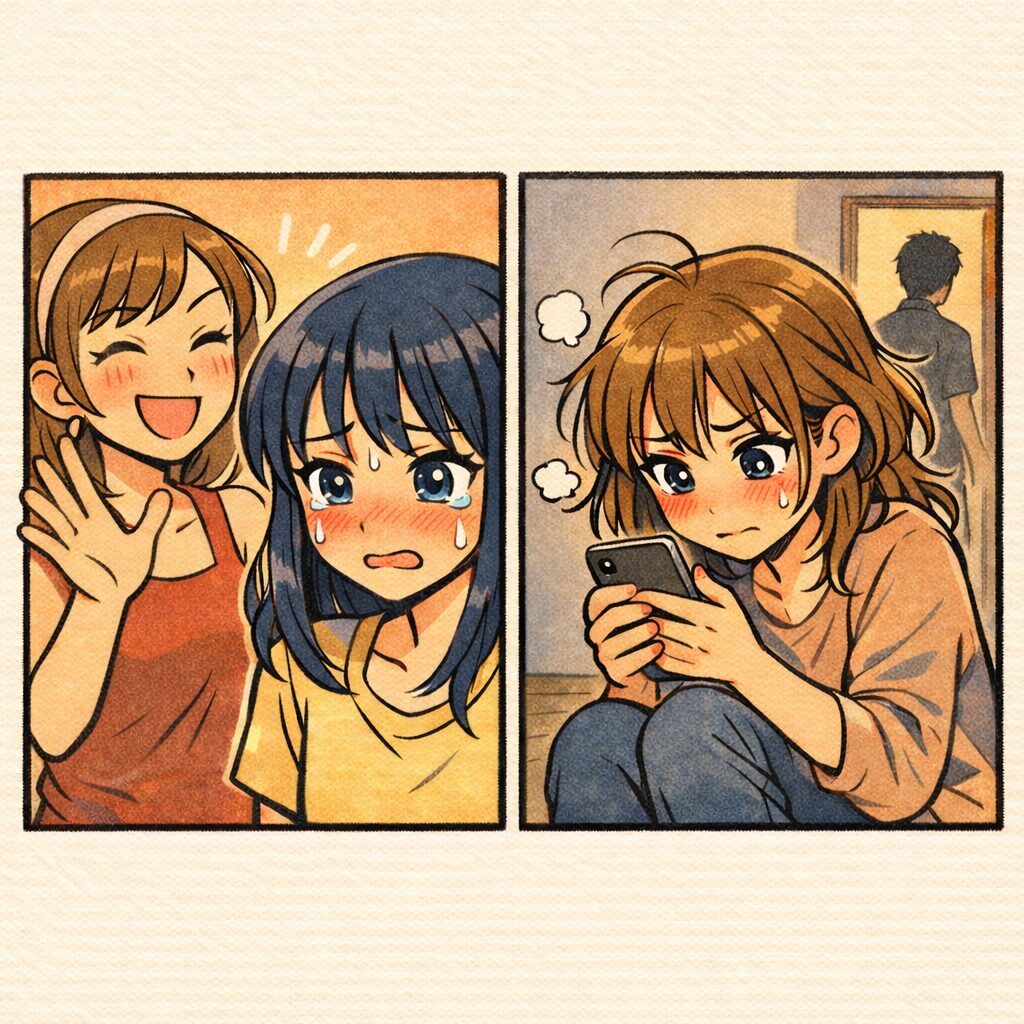 「いや、絶対怪しいって! 今日も元カノのSNS監視しなきゃ……あっ、また新しいストーリー上がってる!これ、うちの夫を匂わせてるんじゃない!?」