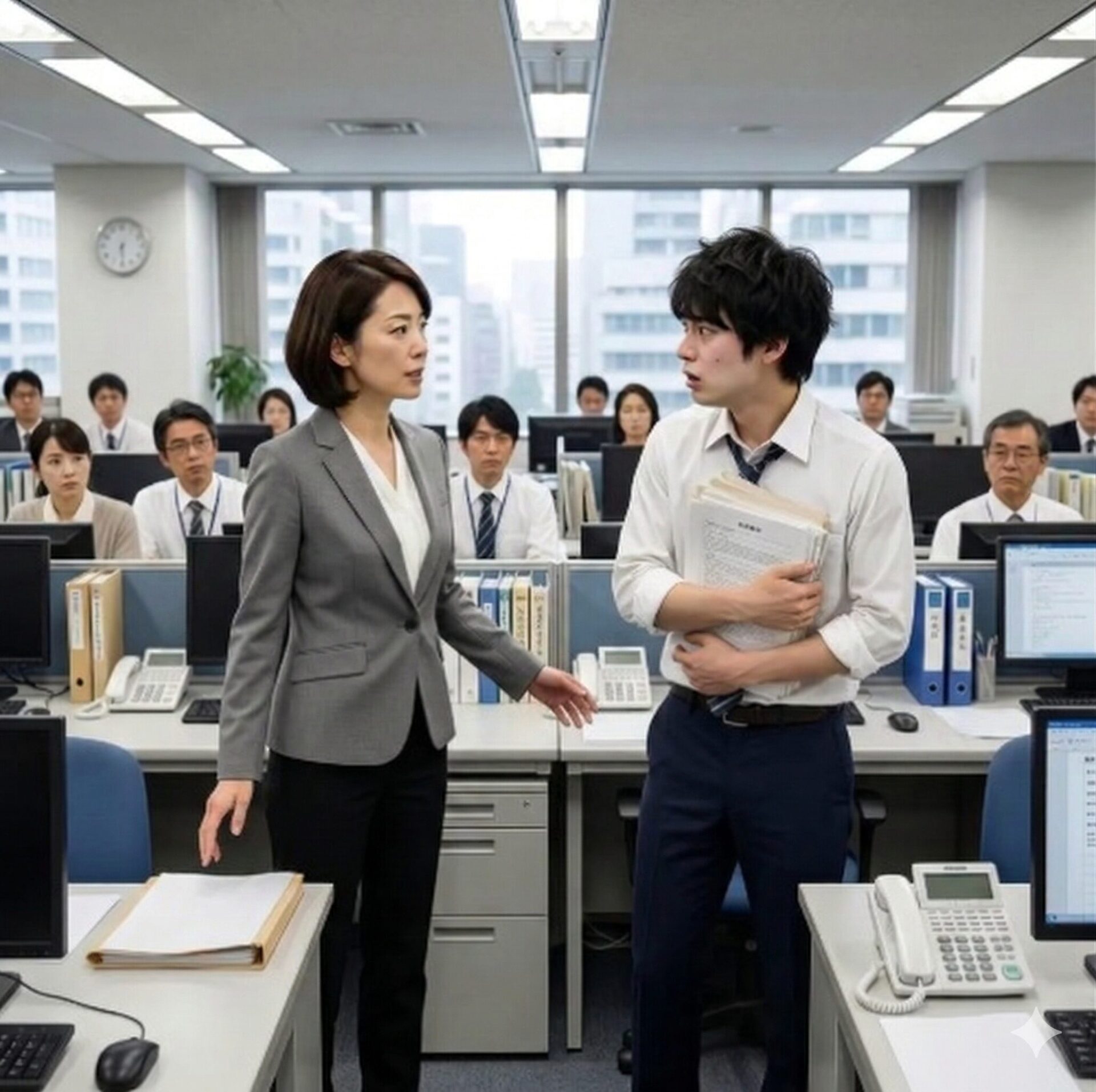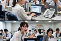 彼は慌てて資料をひったくり、周囲からの冷ややかな視線を一身に浴びながら、真っ赤な顔でパソコンに向かいました。