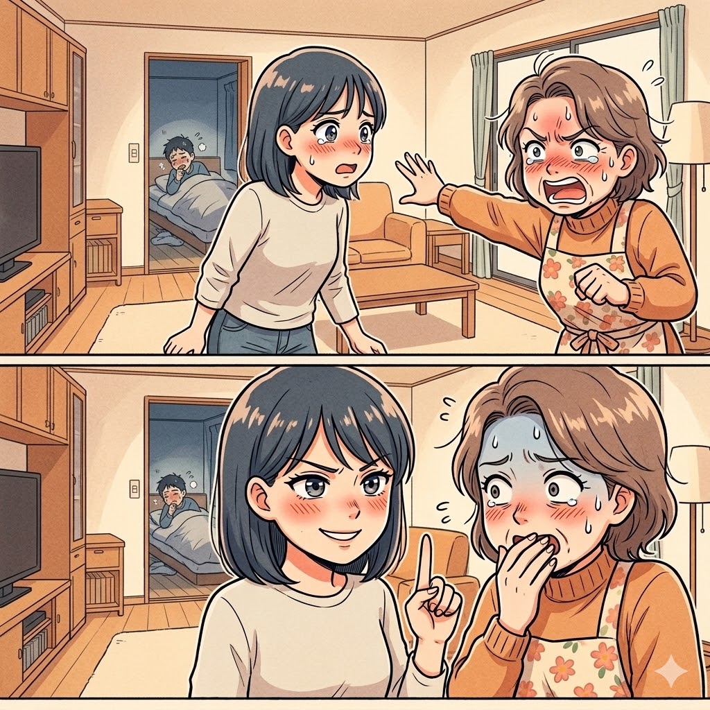 義母は寝室を覗き込むなり、リビングにいる私に向かって猛烈な勢いで詰め寄り始めました。