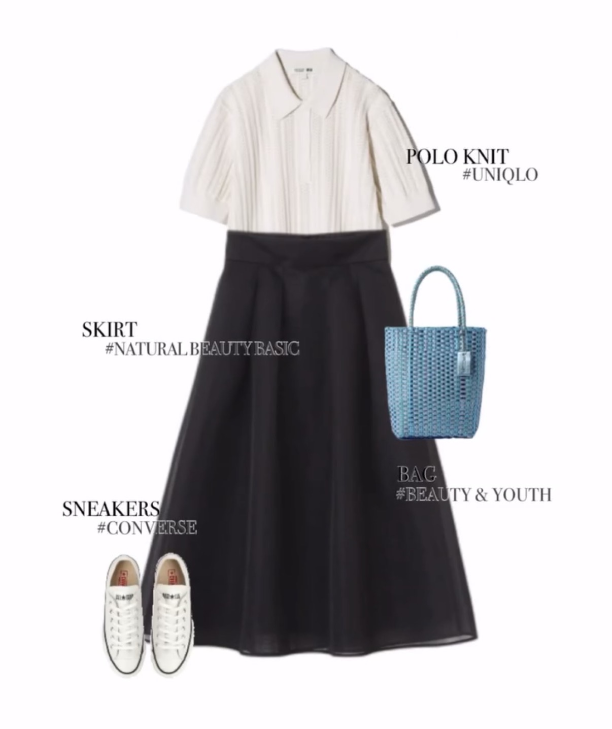 今回、彼女が「究極の着回しアイテム」として選んだのは、NATURAL BEAUTY BASICの黒スカート。