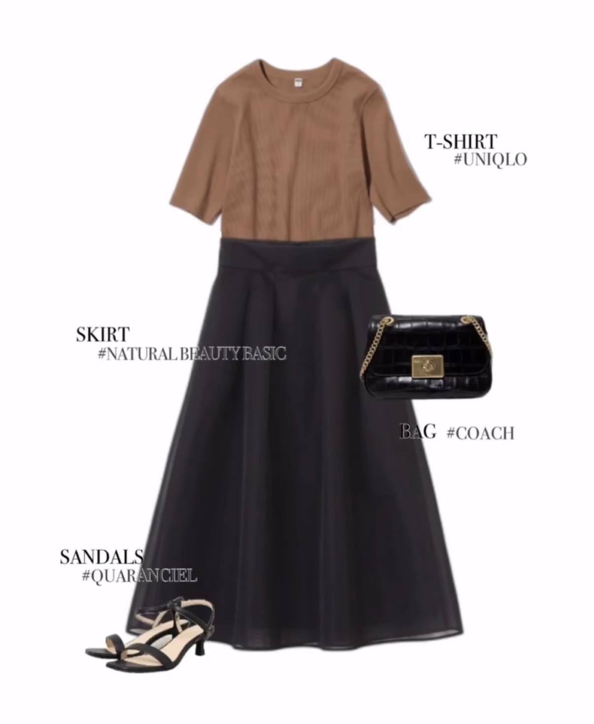 UNIQLOのブラウンTシャツを合わせた、今すぐ真似できる配色術。