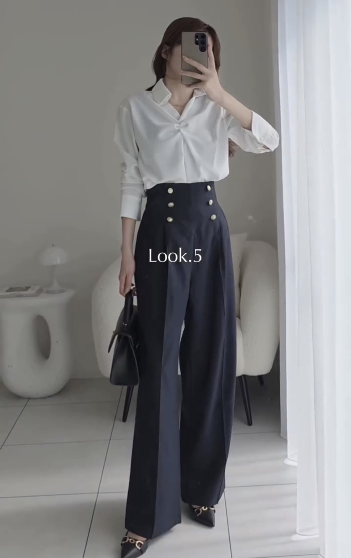 【Look 5】脚長効果が止まらない!「ハイウエストマリンワイドパンツ」