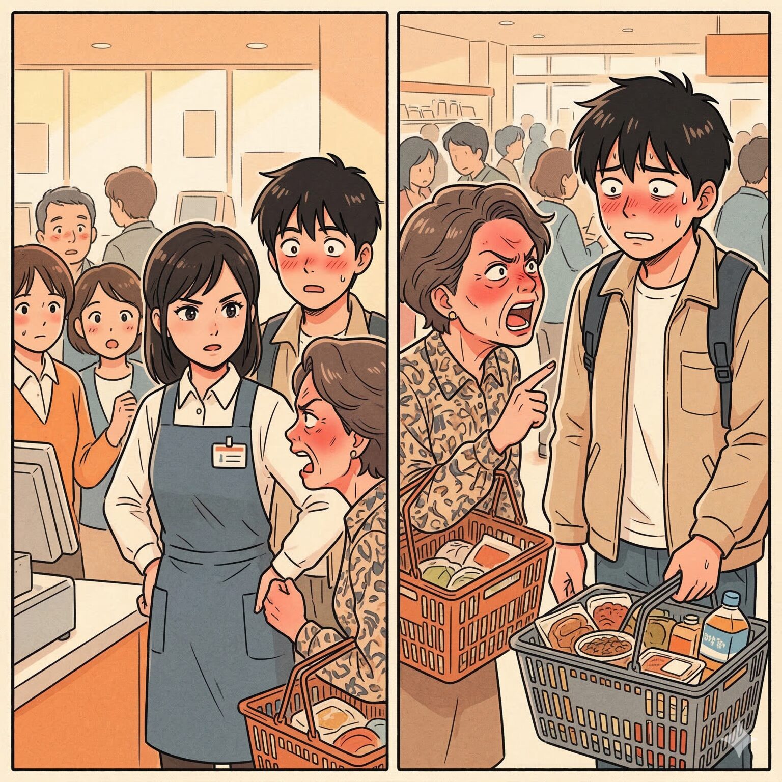 「こっちは時間がないの!」レジで横入りしてきた客の理不尽な言い分→店員さんの神対応でスカッと解決!
