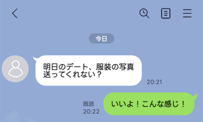 「明日のデート、服装の写真送ってくれない?」