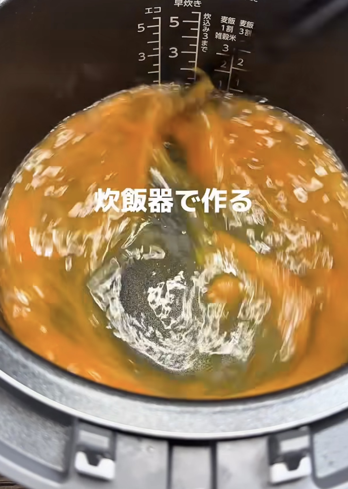 なんと、炊飯器に材料を全部入れて「早炊きボタン」を押すだけという、これまでの常識を180度覆す調理法なんです。