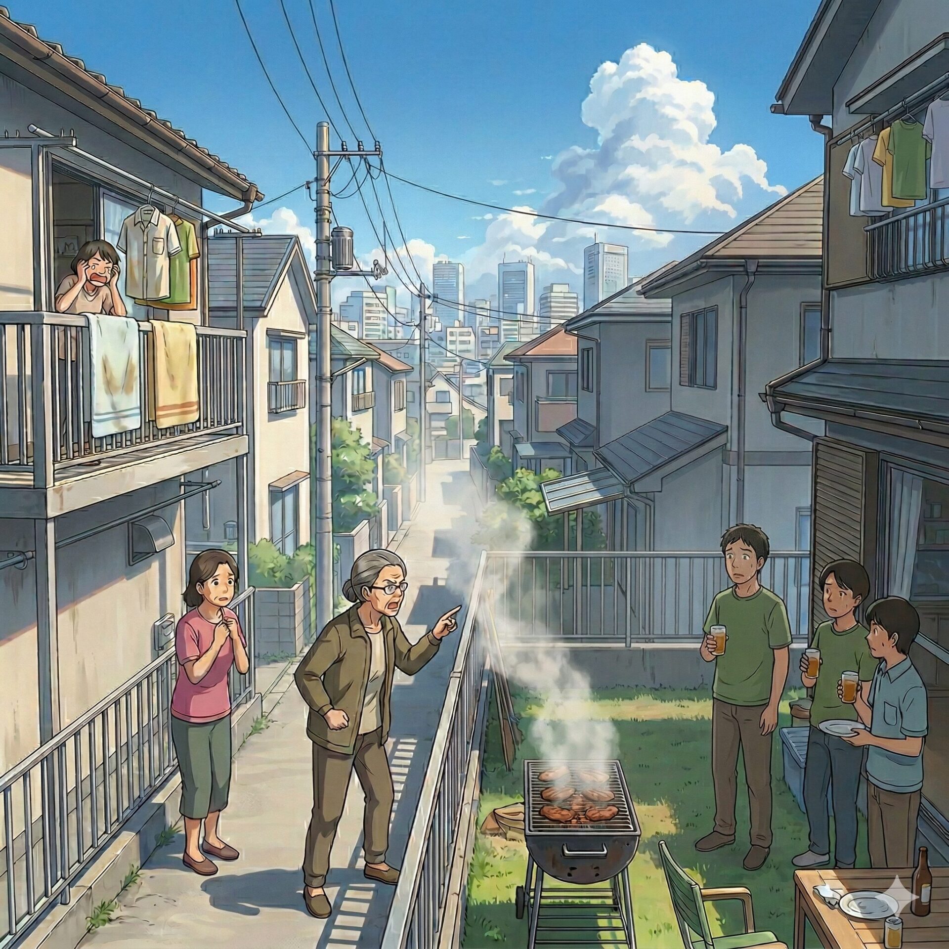 「あの、煙と匂いで本当に困っているんです。洗濯物も干せませんし、ここは住宅街ですよ」