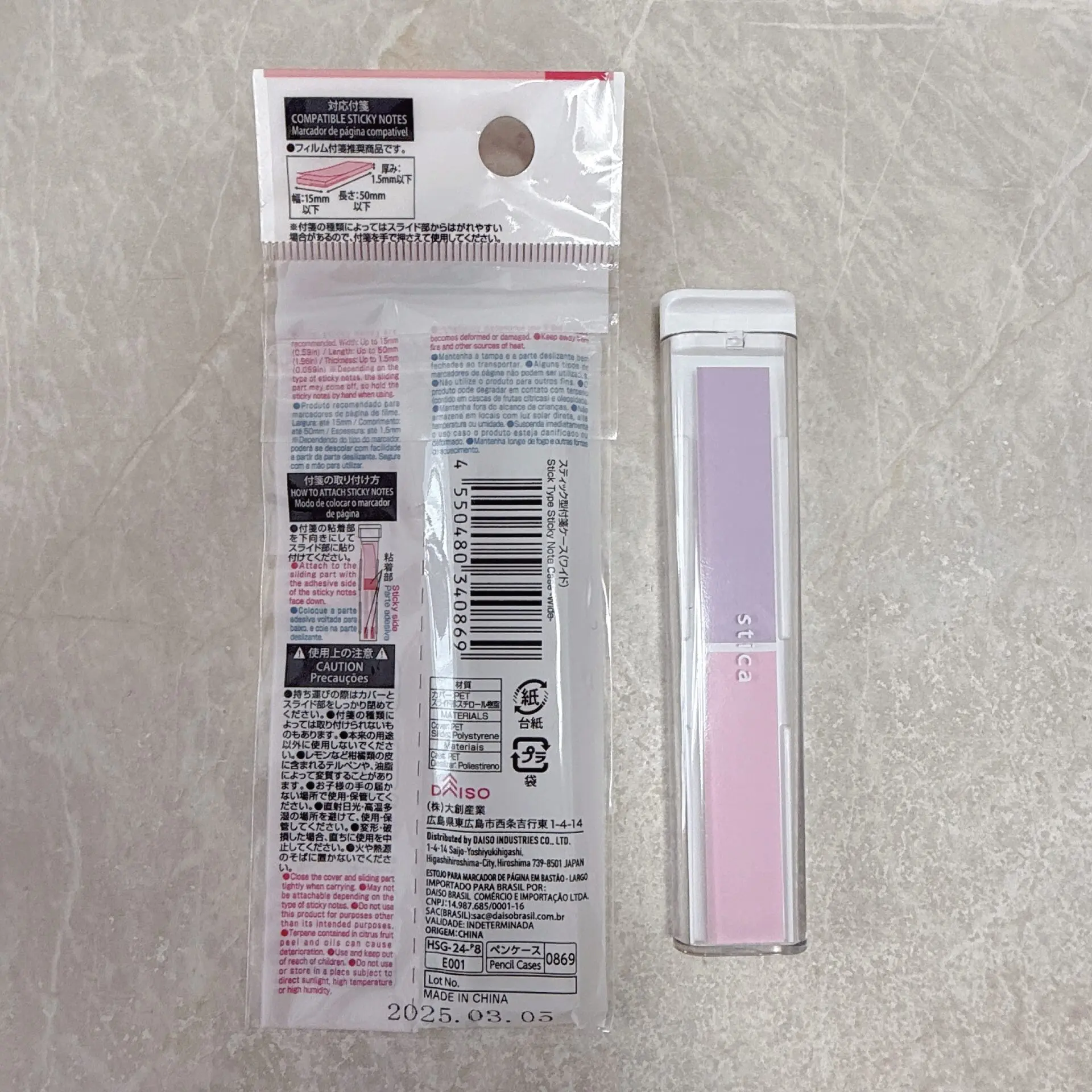 スティック型付箋ケース(ワイド) パッケージ裏と本品