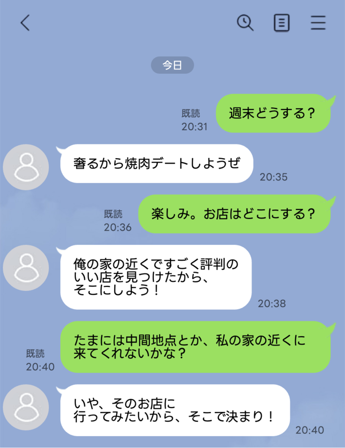 それは、デートの場所が必ず彼の最寄り駅の周辺に指定されることです。私の家からは電車で片道一時間以上かかりますが、彼は一度も中間地点すら提案してくれませんでした。