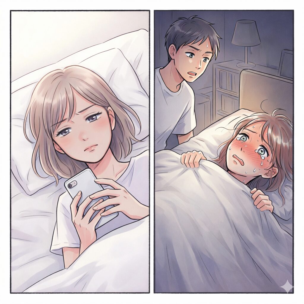 私は毛布にくるまり、ただ嵐が過ぎ去るのを待つように、静かに目を閉じていました。