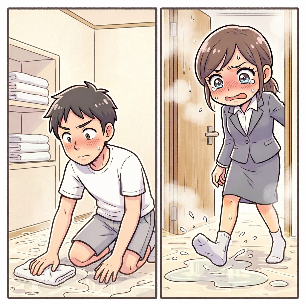 私が毎日、床を拭いている苦労など、微塵も想像していないようでした。湿気で壁紙が傷む心配や、足裏に伝わる不快感に、私の忍耐袋の緒がついに切れました。