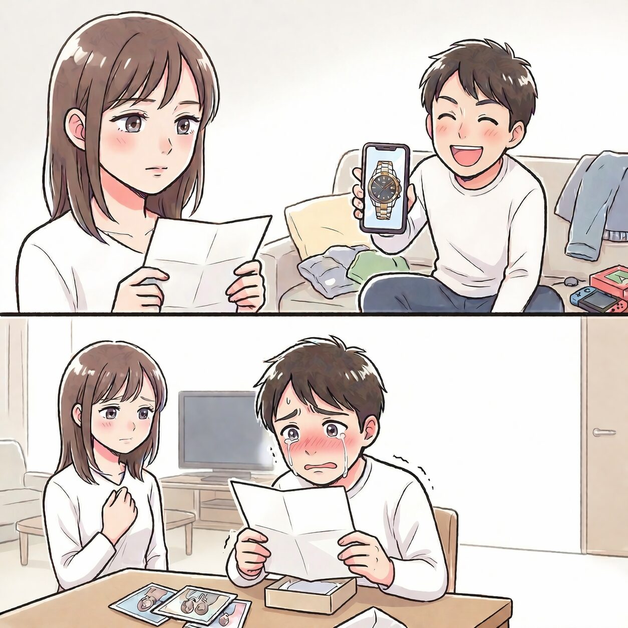 しかし、中から出てきたのは時計ではありません。それは、私たちが付き合い始めたばかりの頃の写真と、一通の手紙でした。
