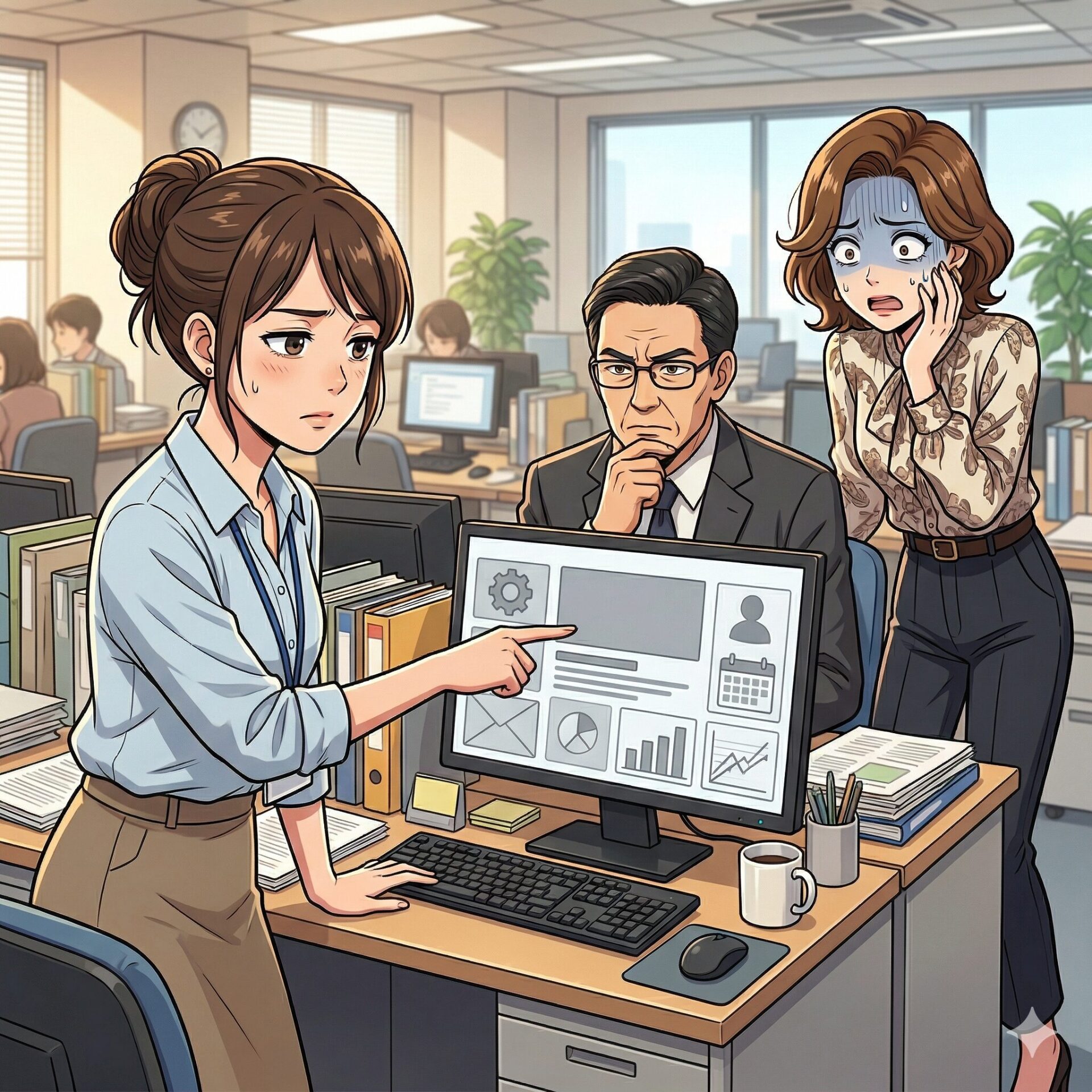 上司が不思議そうにパソコンの画面を確認します。