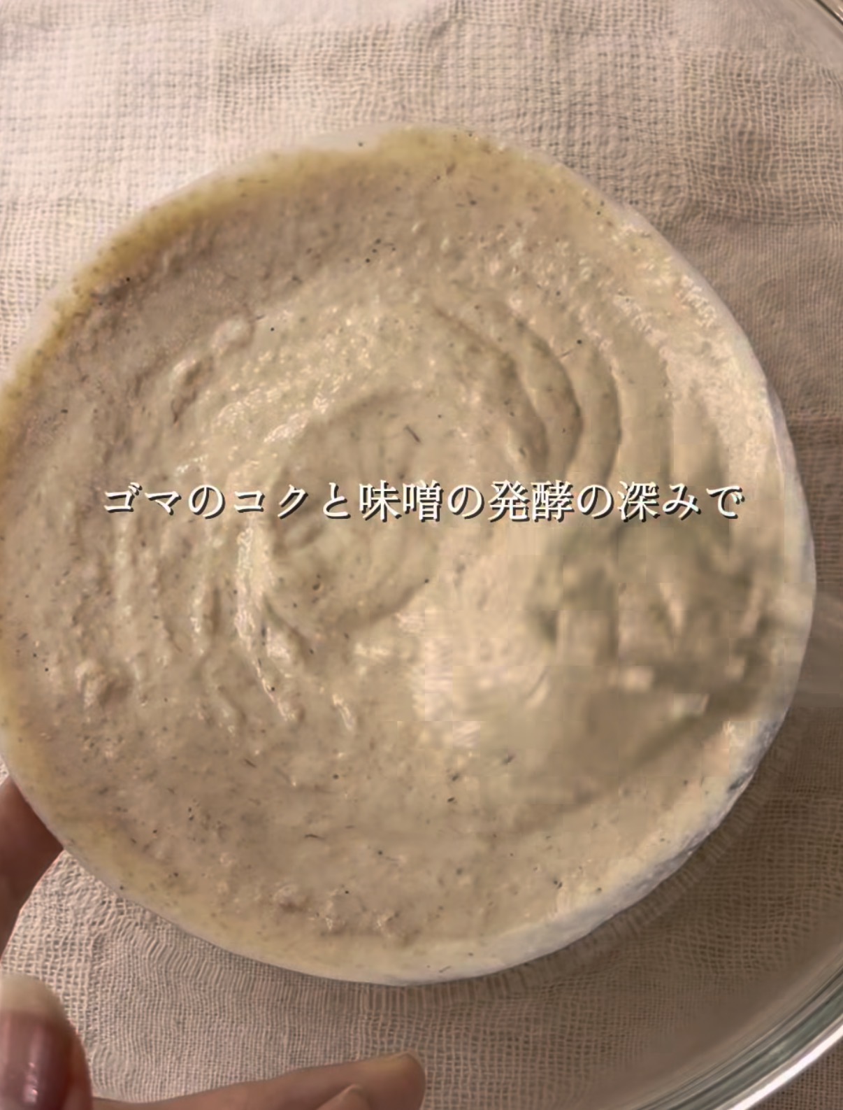 豆腐の滑らかさに味噌と胡麻のコクが加わり、マヨネーズなしとは思えないリッチな仕上がりに。