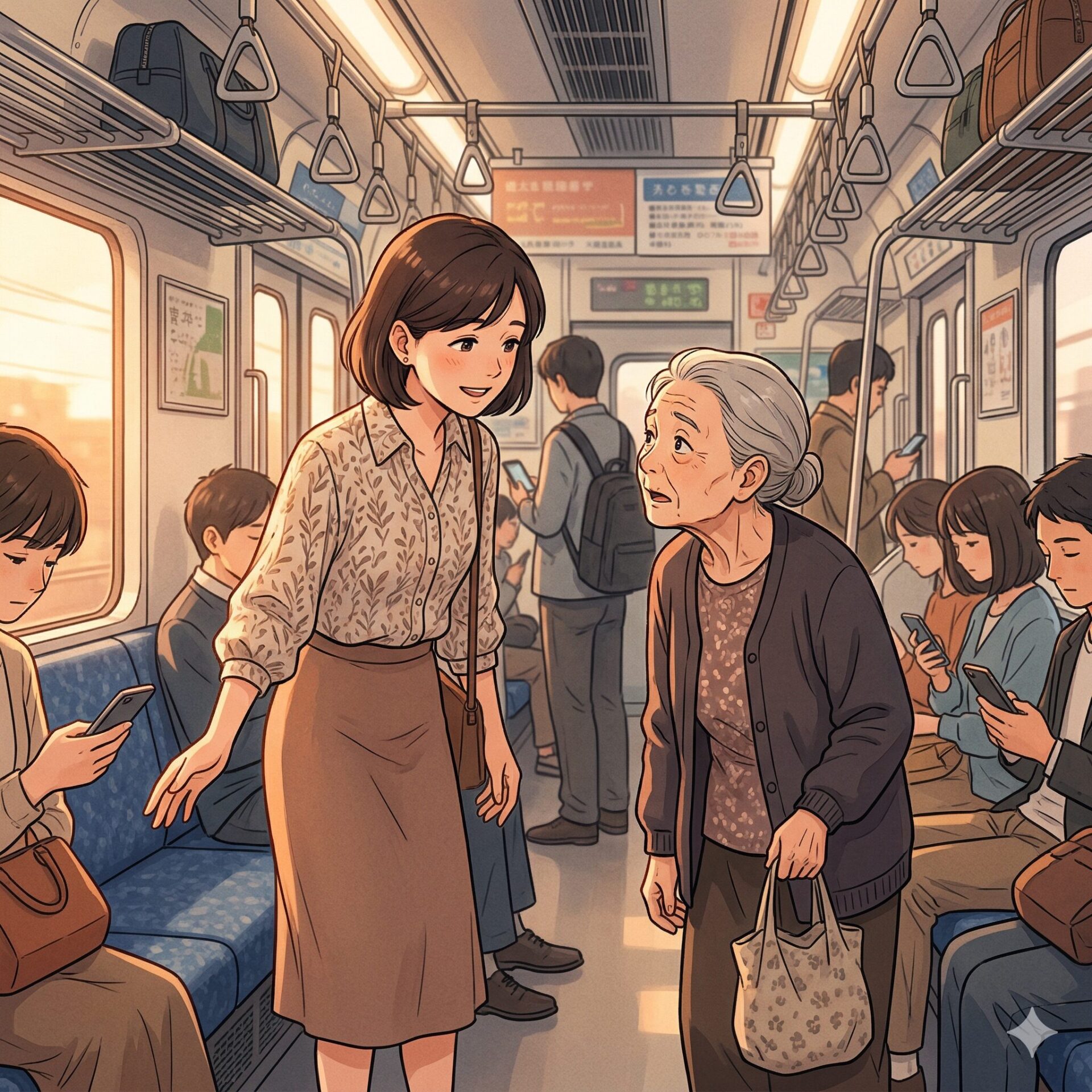思い切って声をかけると、ご年配の女性は驚いたように顔を上げ、私が勧めた座席を見つめました。そしてすぐに、ホッとしたような明るい表情を浮かべてくれたのです。