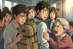 「さっきから当たってて痛いのよ!」通勤ラッシュで巨大リュックを背負い続ける男。乗客の痛快な一喝で空気が一変
