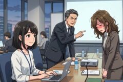 ビクッと驚いて固まる女性を鋭く睨みつけ、義父はさらに一撃を放ちます。