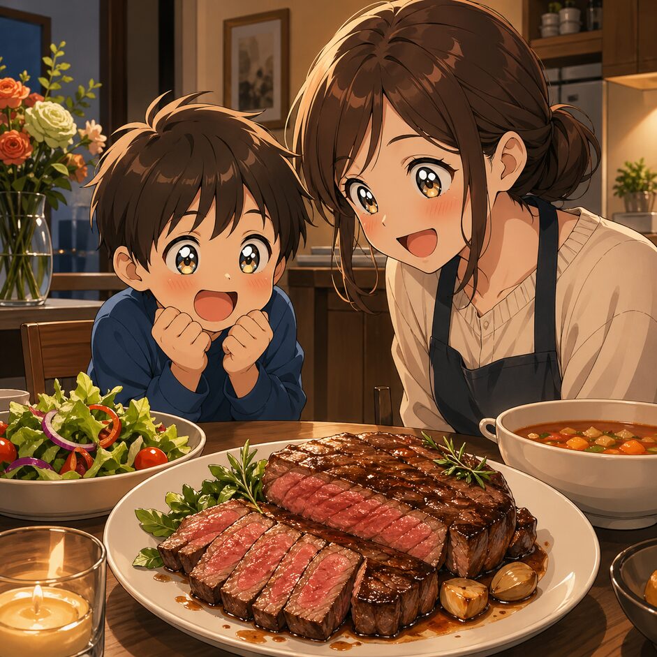 「えっ、今日ステーキだったの!?頼むから俺の分も残しておいて…(泣)」