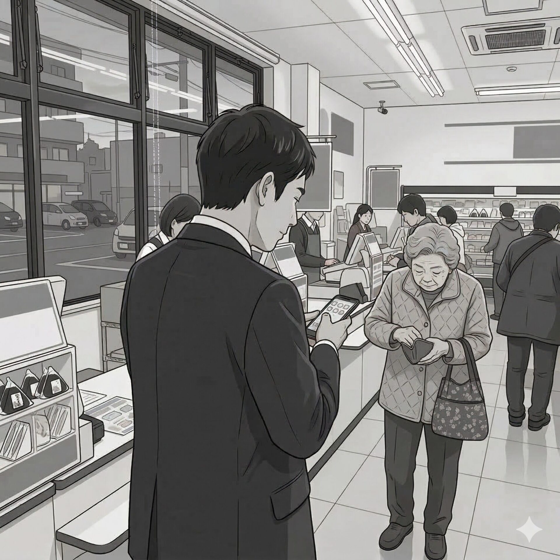 「急がなくて大丈夫ですよ」レジで焦る客をスマホを見るふりをして待った。だが、去り際の一言に耳を疑った