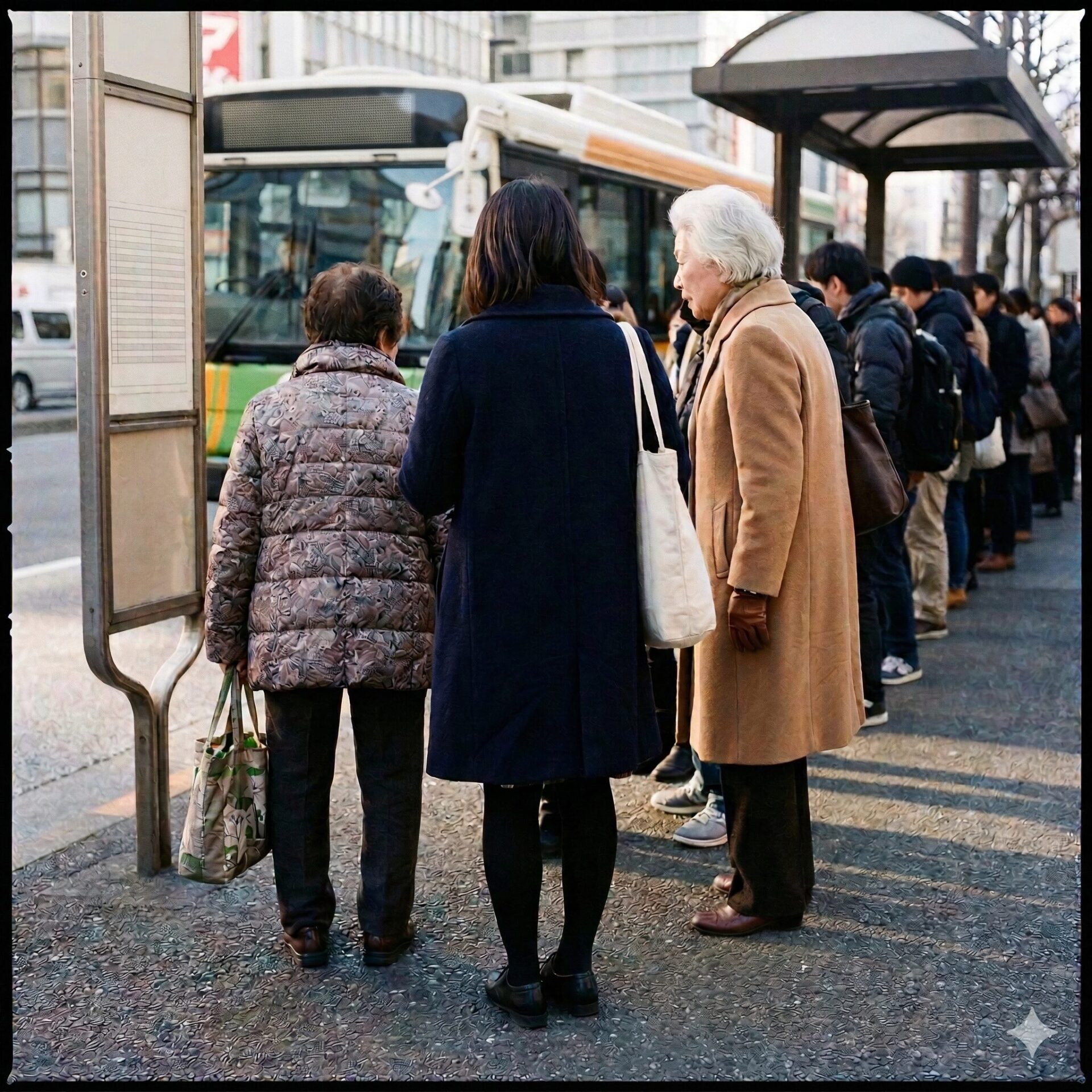 「今、普通に割り込んだよね…?」バス停で当たり前のように順番を抜かす女性。だが、他の乗客の正論をうけ態度が一変